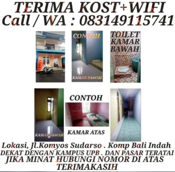Untuk menanyakan ketersediaan kamar kost dan survey kost, harap menghubungi pemilik kost melalui whatsapp atau telepon terlebih dahulu.